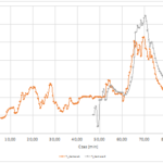 Na podstawie eksperymentu wyznaczono dwa parametry kinetyczne procesu spalania każdej z próbek – prędkość frontu temperatury (spalania/pirolizy) vt (mm/min) oraz prędkość ubytku masy vm (g/min). Wyniki przedstawiono na wykresie. Dla wszystkich próbek zaobserwowano wzrost szybkości transmisji ciepła w złożu wraz ze wzrostem ilości pomiotu w próbce. W przypadku dodatku słomy jest to wzrost wyraźnie zauważalny, zaś w przypadku dodatku trocin wartości utrzymują się na zbliżonym, nieco wyższym niż dla słomy, poziomie.