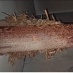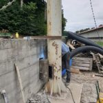 Kolejnymi pracami jakie są wykonywane u Pana Zygmunta przy piecu to podłączenie go do komina. Nastąpiło wykłucie dziury w betonowej ścianie, po czym trzeba było przyspawać łącznik kominowy do komina.