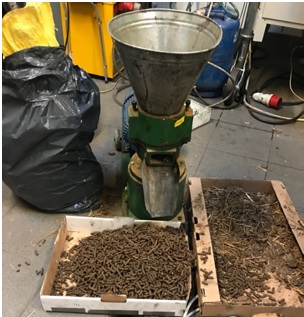 Badania eksperymentalne prowadzone w Instytucie Maszyn Przepływowych PAN uwzględniały również analizę procesu spalania pomiotu kurzego w formie peletu. Badania mają uwzględniać wpływ zawartości słomy w pelecie na proces spalania i skład spalin.