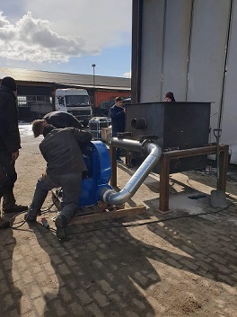 Następnie nastąpiły kolejne testy techniczne instalacji do spalania pomiotu kurzego. Prace techniczne polegały na rozpaleniu i rozruchu instalacji na zrębkach drzewnych, a następnie przy zastosowaniu podajnika ślimakowego dozowano pomiot kurzy do komory spalania.