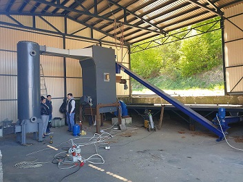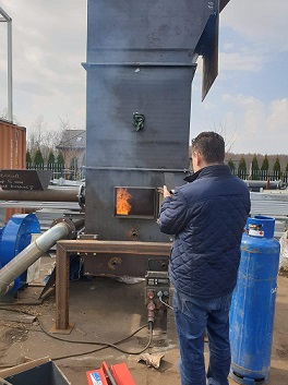 Prace techniczne polegały na rozpaleniu i rozruchu instalacji, a następnie przy zastosowaniu podajnika ślimakowego dozowano pomiot kurzy do komory spalania. Podczas prowadzonych prac podczas rozpalenia uzyskano temperatury na poziomie 600 – 700 °C w górnej części komory spalania oraz 400 – 500 w kanale wylotowym °C. Następne prace uwzględnią podłączenie instalacji do komina i wykonanie bilansu procesu spalania i analizy spalin. Spadki temperatury spowodowane były dozowaniem dużej ilości pomiotu kurzego do kotła.