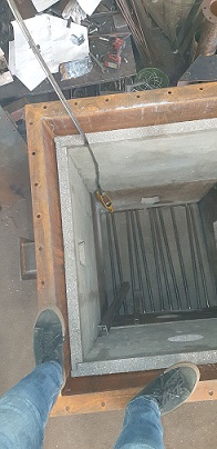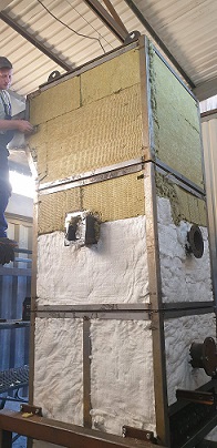 Na początku marca 2021 roku w firmie Stalprofil odbył się montaż płyt ceramicznych na dolną część pieca, po ich zamontowaniu nastąpi wykonanie próby spalania.