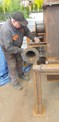 Kolejnym etapem prac firmy Stalprofil było przygotowanie kolektora do zamontowania na piecu. Po czym nastąpiło jego przyspawanie.