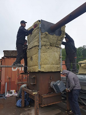 W firmie Stalprofil trwają prace nad izolacją pieca, który następnie zostanie przetransportowany do gospodarstwa Pana Zygmunta.