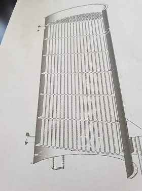 Poniżej pokazana jest pierwsza część projektu pieca, którą otrzymał wykonawca przedsiębiorstwo Stalprofil. Teraz firma rozpocznie prace nad budową pierwszej części. Jest to sekcja paleniskowa przygotowana do prób uzyskania złoża fluidalnego.