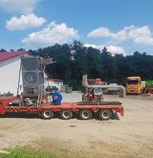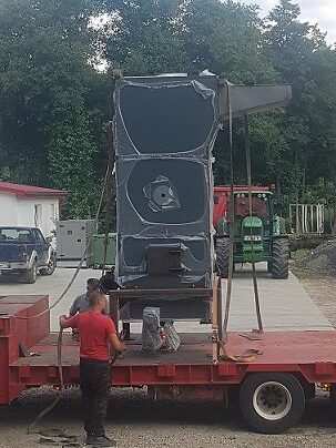 Po izolacji i przygotowaniu pieca nastąpił jego transport do gospodarstwa Pana Zygmunta. Następnie trwały czynności rozładunkowe pieca oraz jego wszystkich części.
