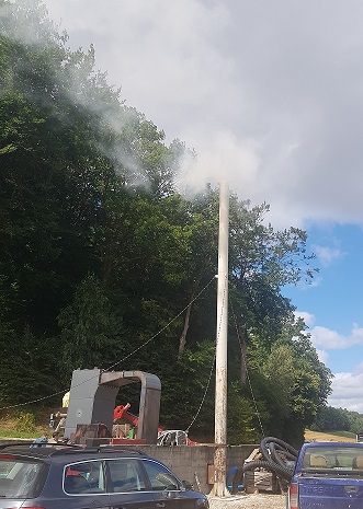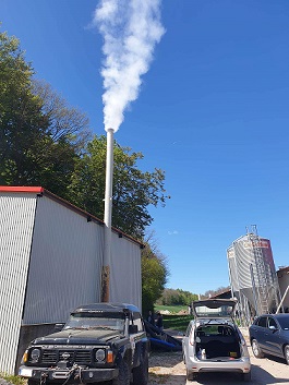 Kolejnie miały miejsce kolejne próby spalania pomiotu kurzego w podwyższonym piecu. Próby można zaliczyć do udanych.