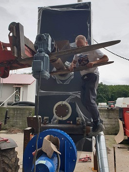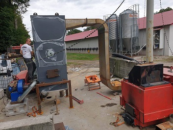 Ostatnim etapem pod koniec czerwca 2022roku było zamontowanie podajnika ślimakowego służącego do odbioru pomiotu kurzego. Nastąpiła próba odpalenia, po czym piec został oddany do dalszej eksploatacji.