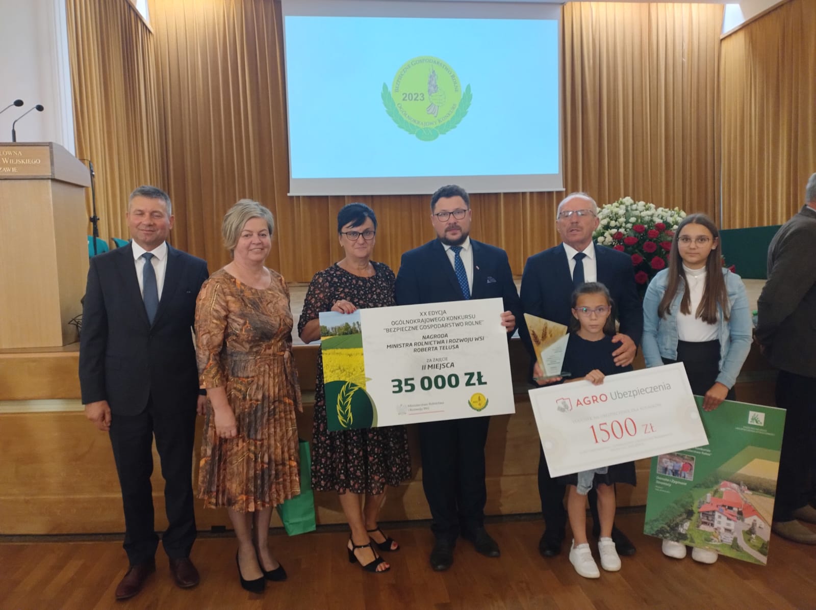 W dniu 22 września 2023r. w auli kryształowej Szkoły Głównej Gospodarstwa Wiejskiego w Warszawie odbyła się gala finałowa XX edycji Ogólnopolskiego Konkursu „Bezpieczne Gospodarstwo Rolne”, podczas której nagrodzono zwycięzców w tym również Państwa Danutę i Zygmunta Stromskich. W uroczystej gali wzięli udział Minister Rolnictwa i Rozwoju Wsi Robert Telus, laureaci konkursu, zwycięzcy poprzednich edycji, przedstawiciele współorganizatorów oraz fundatorzy nagród. Gospodarstwo rolne Państwa Danuty i Zygmunta Stromskich zajęło drugie miejsce reprezentując powiat kartuski.
